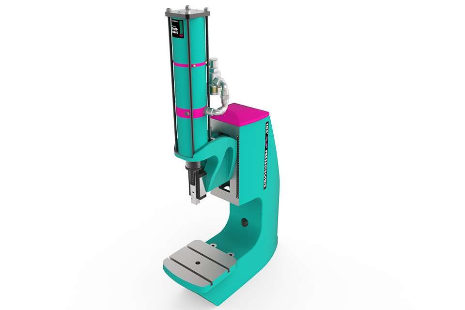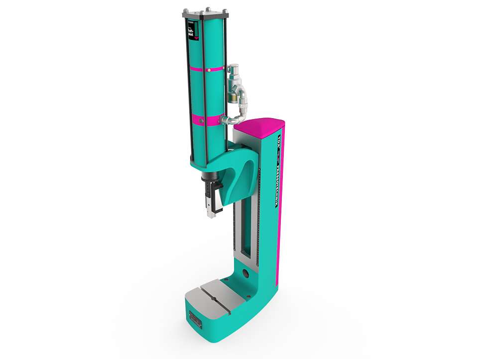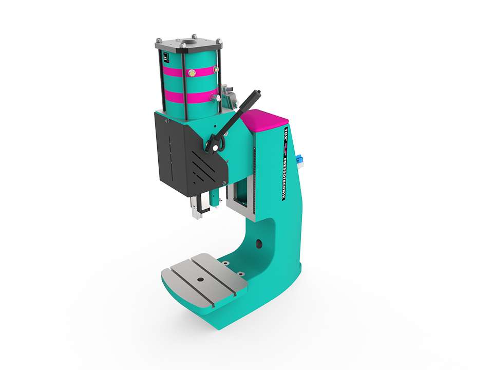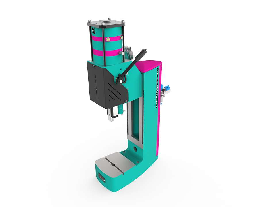 A dugattyúrúd egy kézi kar meghúzásával egy könyökemelős mechanikán keresztül mozgatható. Egy végálláskapcsoló reteszelése után a karon lévő indítógomb megnyomásával indíthatjuk a legfeljebb 6 mm hosszú pneumatikus erőlöketet. A kar felengedésével, vagy az indítógomb elengedésével véget ér az préselés.